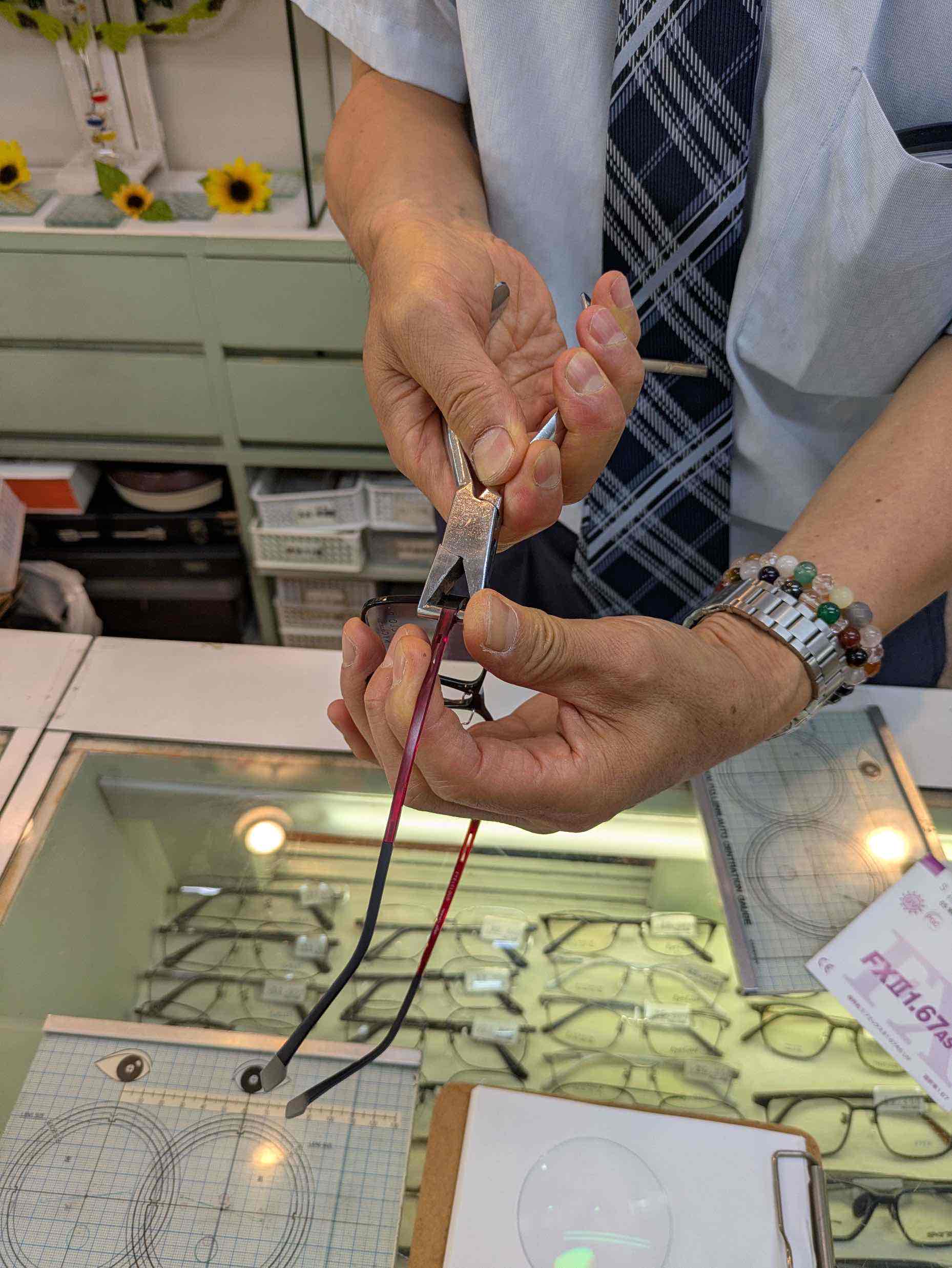 調整なしでかけ続けると、結局長く使えなくなってしまう。一見、小さな差に思えるフィッティングの違い。けれど、これこそが眼鏡の「快適さ」を左右する最大のポイントなのだという。ネットで買える時代だからこその、“顔に合わせる価値”がそこにはあった。